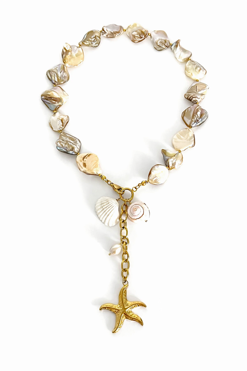 Coastal Charm Lariat Necklace – Shell & Starfish Pendant